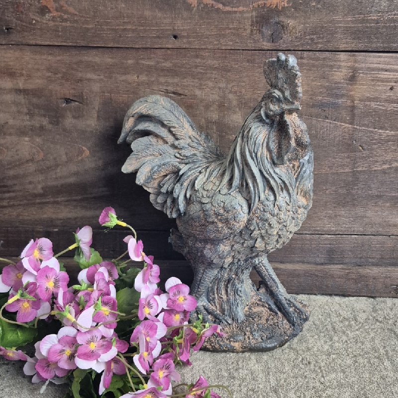 Mooi landelijk beeld haan van polystone.