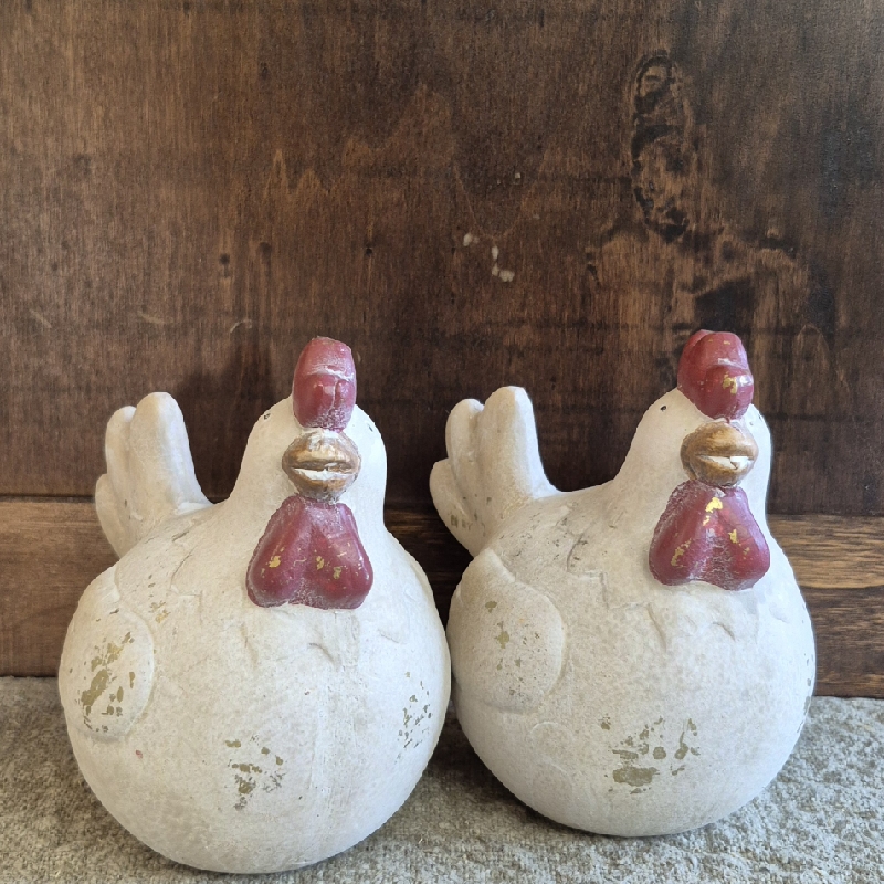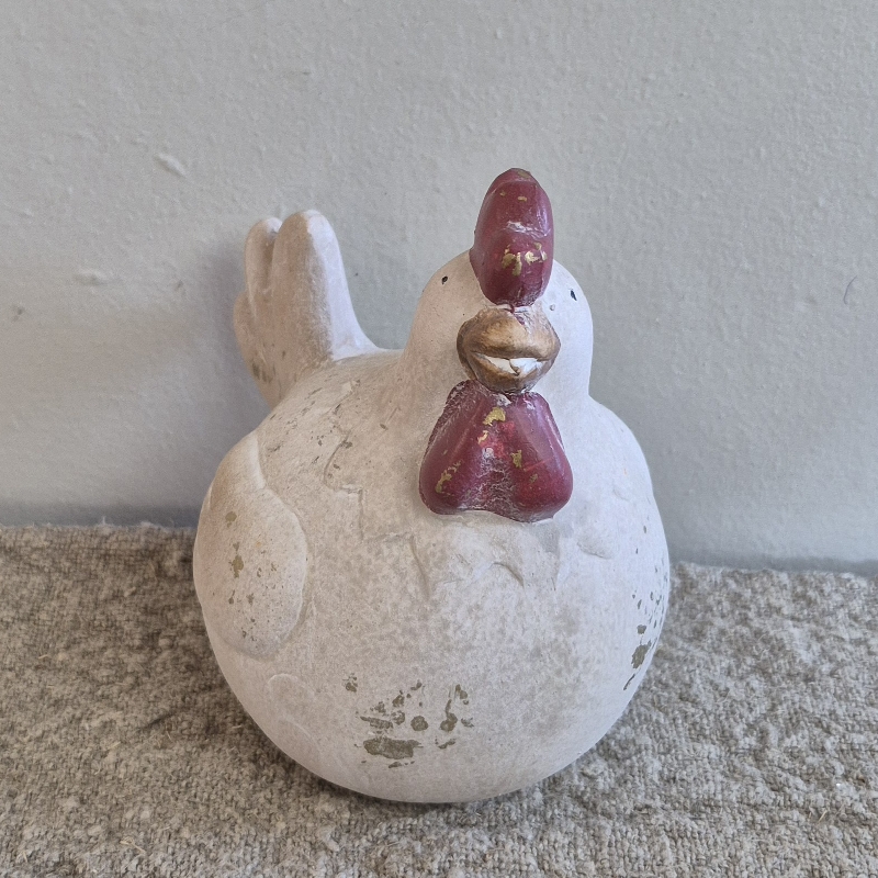 Decoratie kip steen, leuk voor op de vensterbank, in een mandje, op een plateau of onder een stolp. Afm: 10x13.5x13.5cm. Kleinste op de foto.