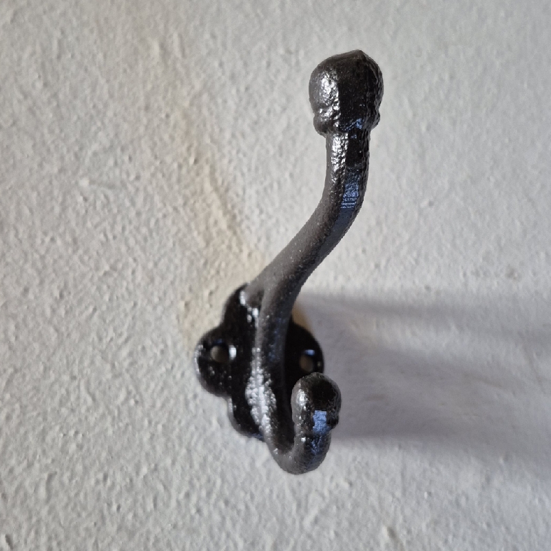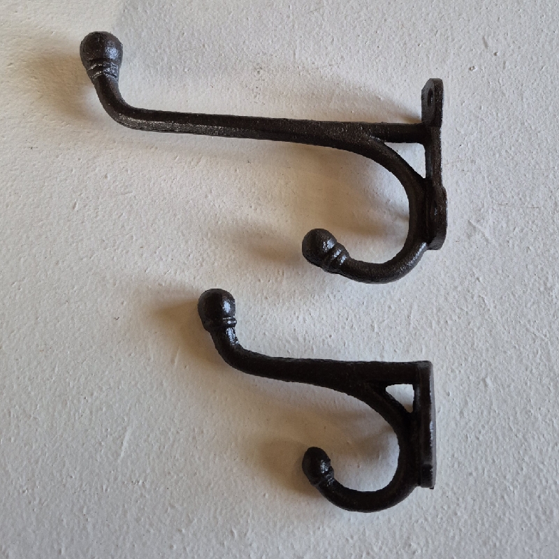 Gietijzeren jashaak dubbel. Leuk om zelf een kapstok mee te maken en af te wisselen met de grotere soort.