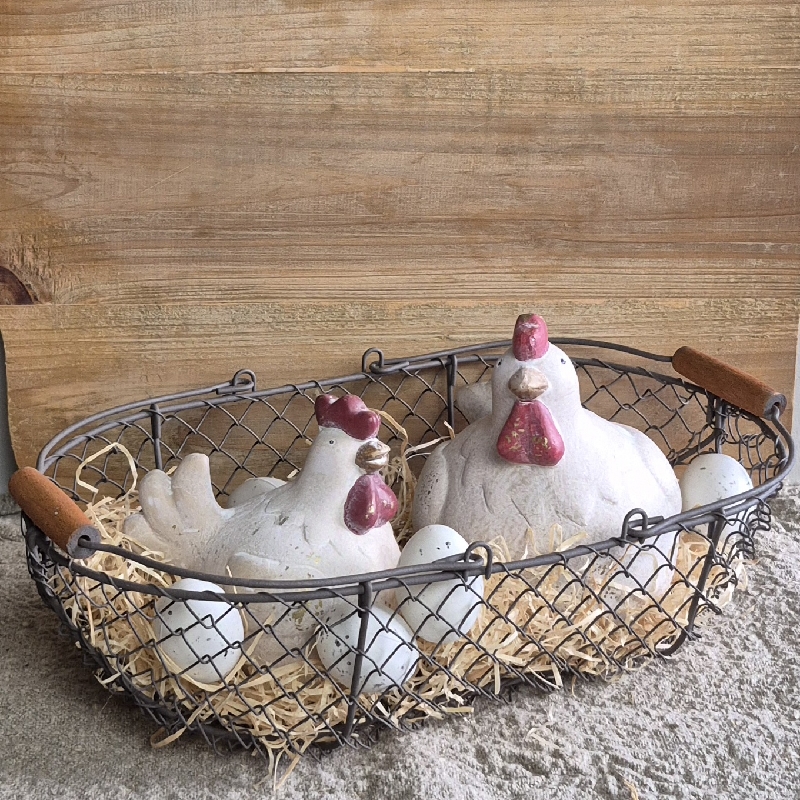 Kippengaas mand, leuk in je keuken met eieren, uien, kruidenplantjes of wat dan ook voor een landelijke uitstraling. Afm: 39x23x12cm.