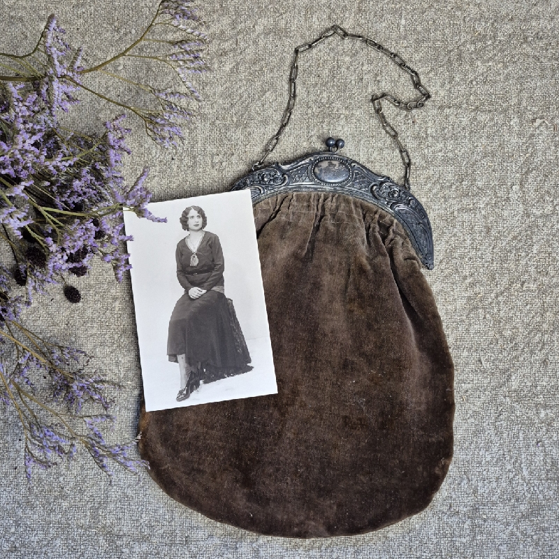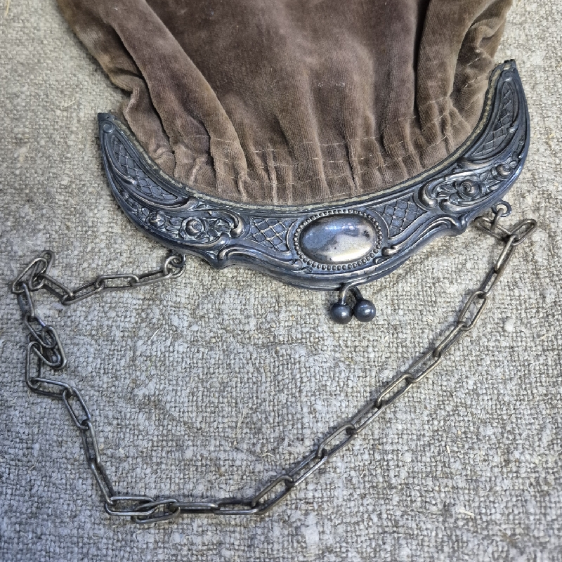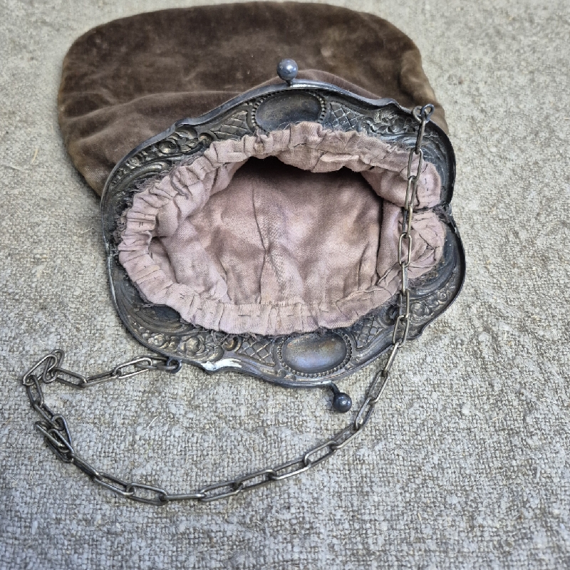 Oud stoffen beursje ofwel beugeltasje.
