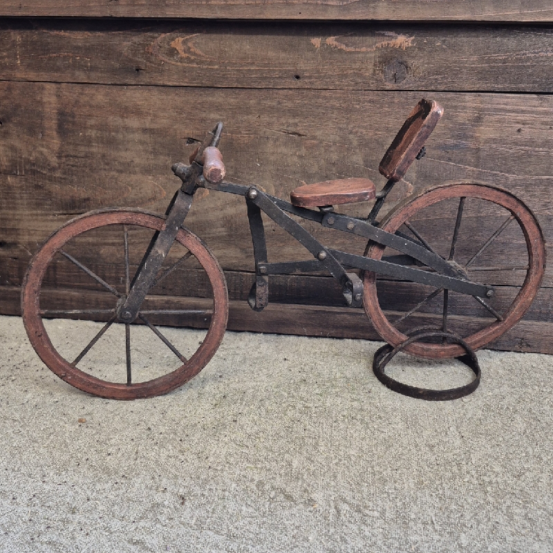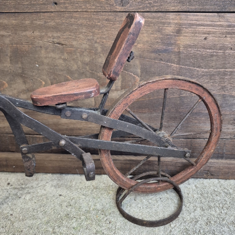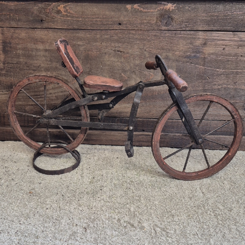 Oud fietsje van hout en metaal