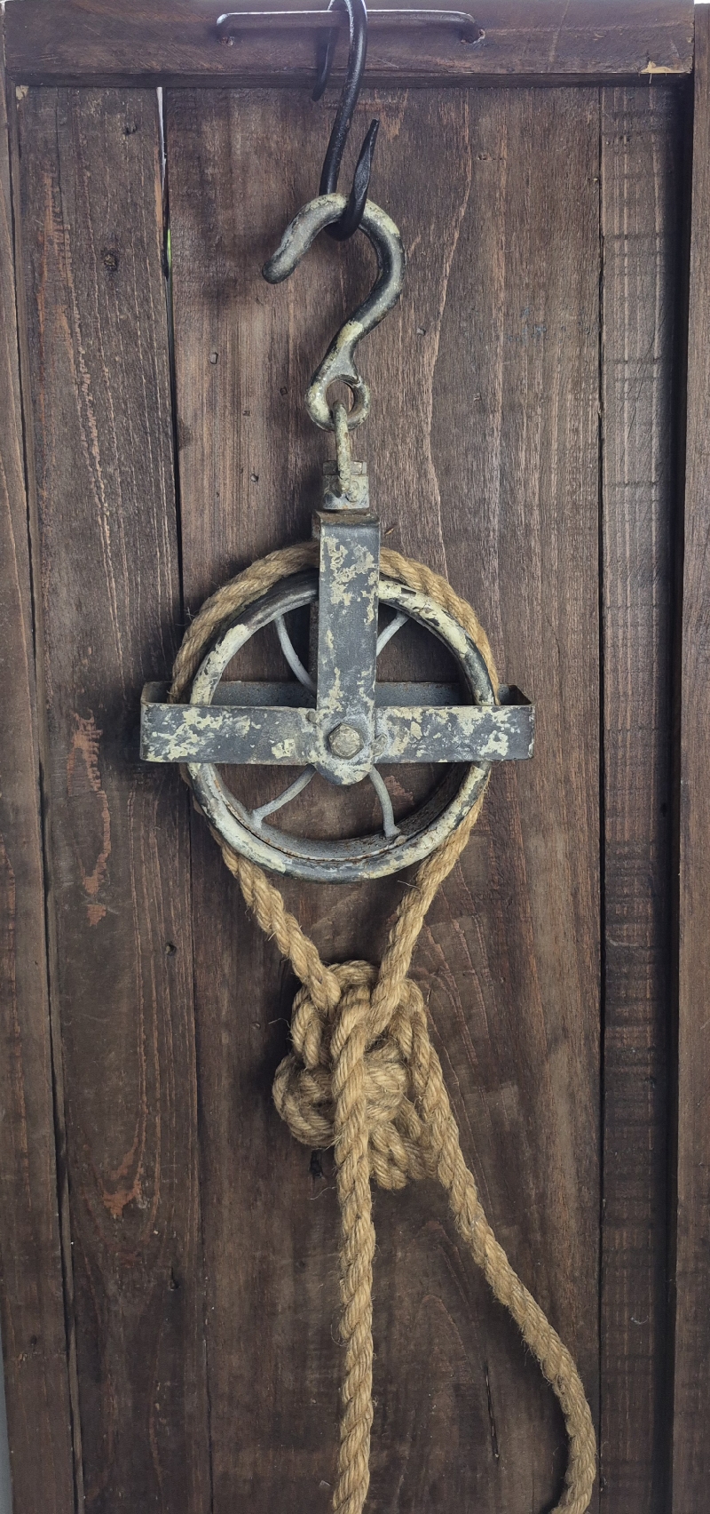 Oude katrol met haak