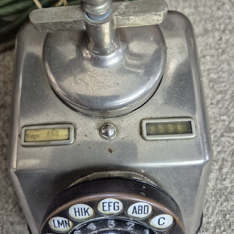 Mooie oude telefoon van Deense makelaardij. Jaren 50 met nummerteller. Waarschijnlijk gebruikt in een bedrijf aan waterlooplein Amsterdam.