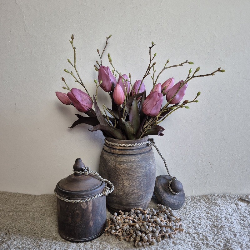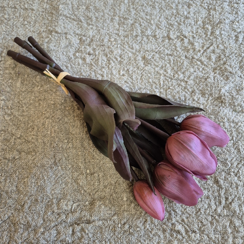 Mooie bos kunsttulpen bijna niet van echt te onderscheiden door gebruik van rubber materiaal. 5 stuks in bos. Lengte 30 cm. Kleur: donkerroze