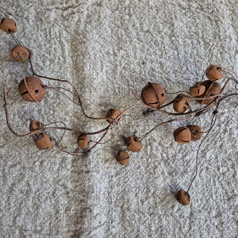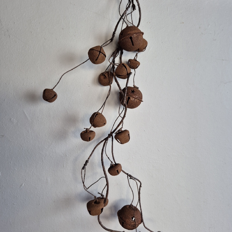 Leuke guirlande met roest belletjes, leuk aan een toef, boompje of tussen je decoratie. Lengte: 70cm.