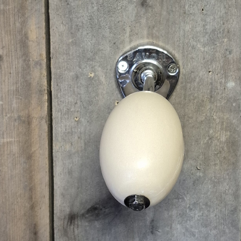 Mooie zeepbolhouder met nikkelen stang en heerlijk nostalgische geurende witte zeepbol.